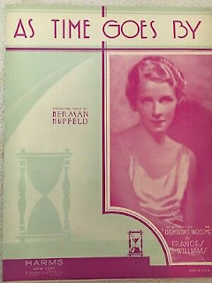Here we have the original sheet music of As Time Goes BY from the Broadway musical Everybody's Welcome in 1931 sung by Frances Williams in the show. Great picture of her on the cover. The original song was sung with the beginning intro that puts every thing in perspective. Just adds to the song. Rudy Vallee recorded it in 1931 as well as Binnie Hale and Jacques Renard and then many others as the years went by. Most if not all dropped the intro. ;(